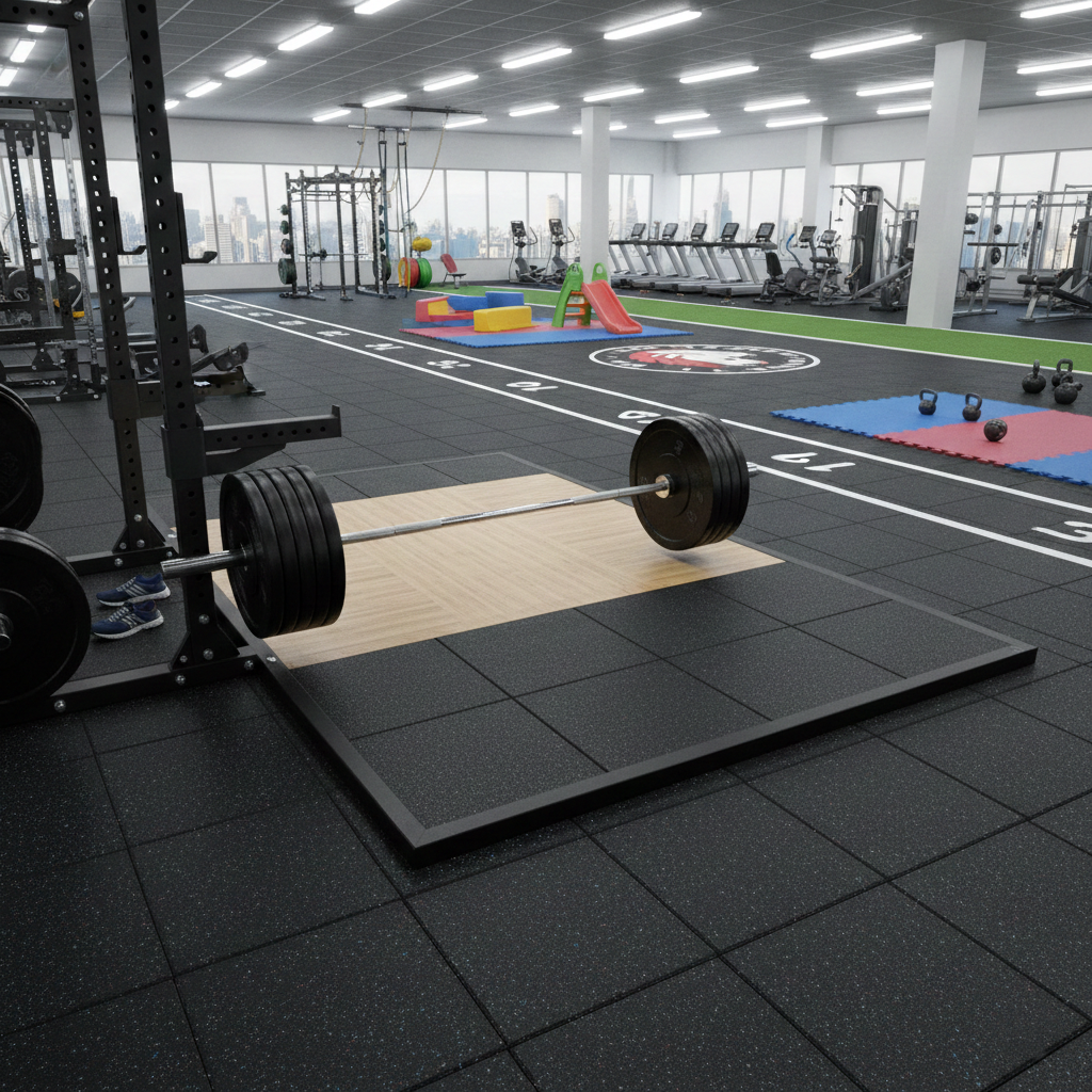 Resilient, slip-resistant flooring designed for fitness centers and workout zones.
